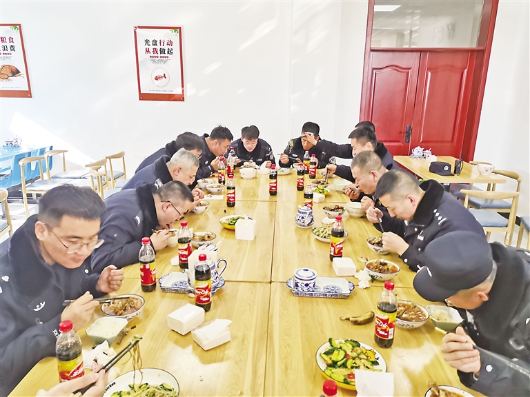 1月28日,吴忠市公安局红寺堡区分局红寺堡派出所,民辅警一起吃团圆饭。 本报记者 马忠 摄