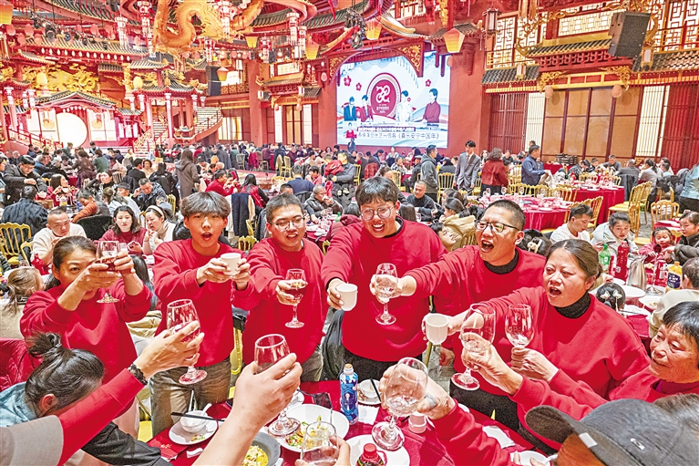 1月28日,人们在安徽省芜湖市繁昌区一家酒店内享用团圆饭。