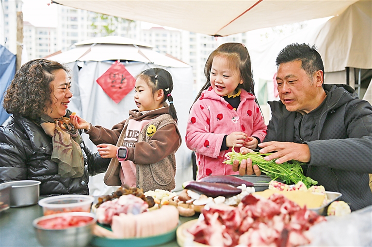 1月28日,在云南省巧家县栗喉蜂虎房车营地,来自重庆的游客秦建华一家准备团圆饭菜肴。