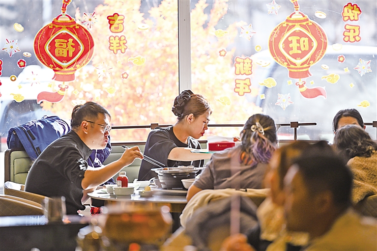 1月28日,市民在内蒙古呼和浩特市赛罕区一家饭店用餐。