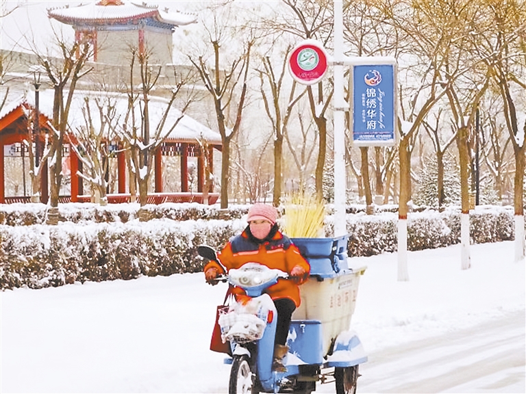 正月初一,环卫工人赶往责任区工作。 本报记者 王瑞 摄
