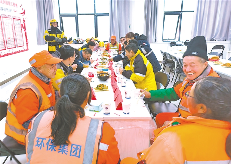 ②银川市兴庆区友爱社区邀请环卫工人、外卖骑手和快递小哥吃团圆饭。宁夏日报报业集团全媒体记者 高晓刚 摄