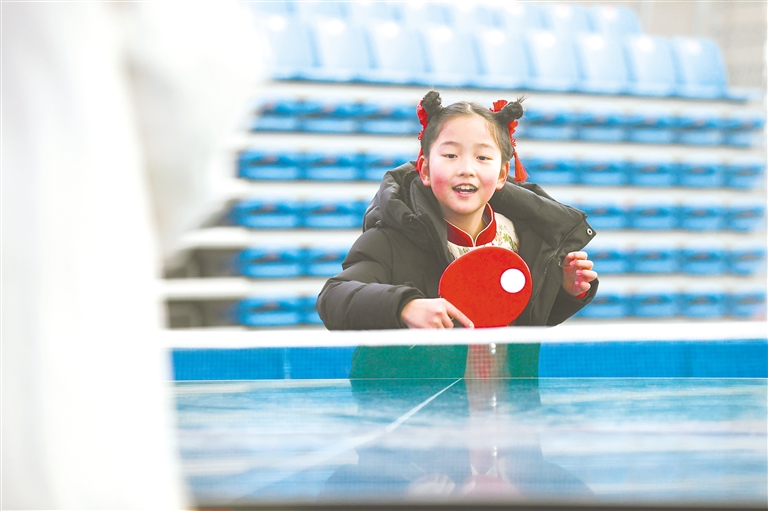 ④1月31日,宁夏亲水体育中心,市民健身过大年。图为一名小朋友在打乒乓球。 本报记者 马楠 摄