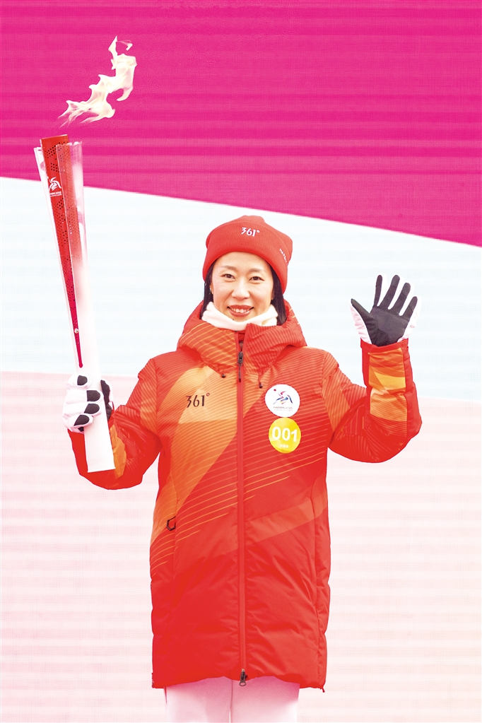 2月3日,第一棒火炬手、奥运冠军申雪在展示火炬。当日,第九届亚冬会火炬传递活动在哈尔滨举行。 新华社发