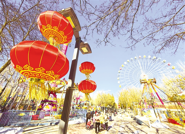 2月4日,银川中山公园内市民结伴出游,享受假日时光。 本报记者 马楠 实习生 孙莎莎 摄