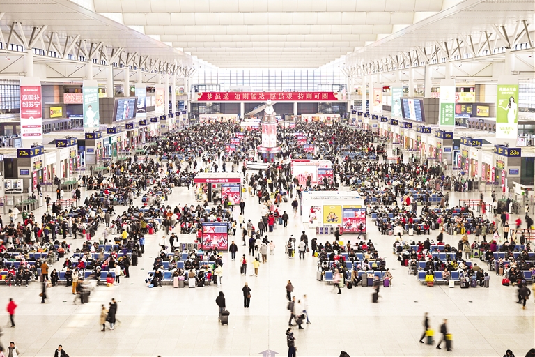 这是2月4日拍摄的上海虹桥火车站候车大厅。当日是春节假期的最后一天,全国各地迎来返程高峰。 新华社发