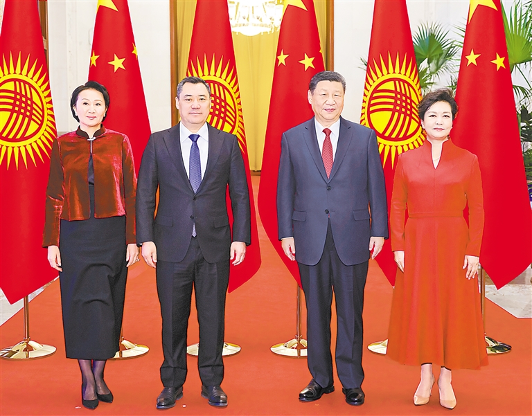 习近平指出,中国和吉尔吉斯斯坦山水相依、民心相亲,是好邻居、好朋友、好伙伴。近年来,中吉关系实现跨越式发展,达到新时代全面战略伙伴的新高度。双方政治互信持续巩固,各领域合作喜讯频传,构建中吉命运共同体的社会和民意基础日益牢固。中方支持吉方走符合本国国情的发展道路,愿同吉方深化发展战略对接,扩大治国理政经验交流,推进全方位互利合作,携手维护两国共同利益,推动中吉命运共同体建设更好落地走实。