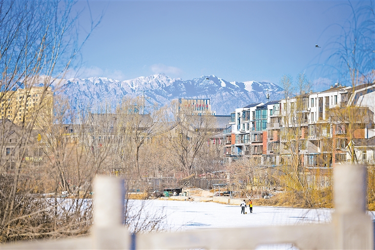 2月5日,银川市空气质量优。冰封的湖面、积雪覆盖的贺兰山、拱桥、楼宇,还有深邃的蓝天共同勾勒出一幅新春遇见“银川蓝”的生态美卷。 本报记者 马楠 王洋 摄