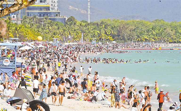 2月6日,三亚市大东海景区人头攒动。春节假期已过,三亚旅游市场依然热度不减。记者走访三亚各大景区发现,错峰出游的游客络绎不绝。2025年春节长假,三亚共接待游客256.87万人次,实现旅游总收入67.06亿元,在2024年同期基础上保持平稳增长。 新华社发