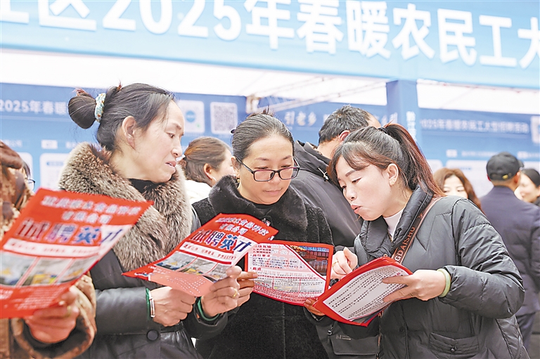 2月4日,人们在重庆市黔江区红军广场招聘活动上了解招聘信息。新春伊始,全国各地组织多场招聘活动,为求职群体提供工作岗位,助力企业复工复产。 新华社发