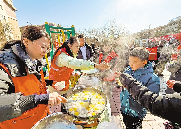 2月10日,银川市兴庆区银古路街道景湖社区、福园社区新时代文明实践站邀请辖区共建单位代表、退休党员、居民、青少年志愿者,举办2025年“‘团’聚元宵‘圆’聚邻里”主题活动,一起包元宵、话传统、猜灯谜,品味民俗风情。 本报记者 马楠 马丽 实习生 孙莎莎 摄
