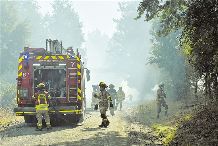 2月9日,消防员在智利劳塔罗附近灭火。智利劳塔罗附近地区近日遭野火侵袭。 新华社/路透