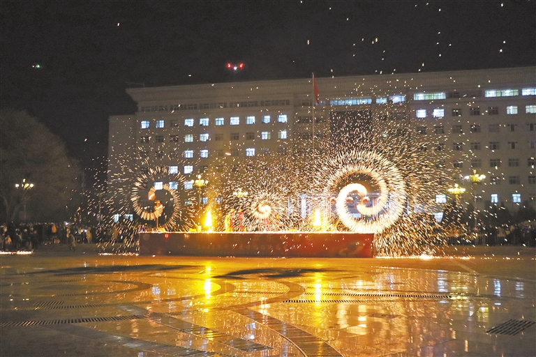 2月12日,平罗县举行“文旅促消费 欢乐闹元宵”活动,这是非遗展演——打铁花。 宁夏日报报业集团全媒体记者 马霄鹏 杨文婷 摄