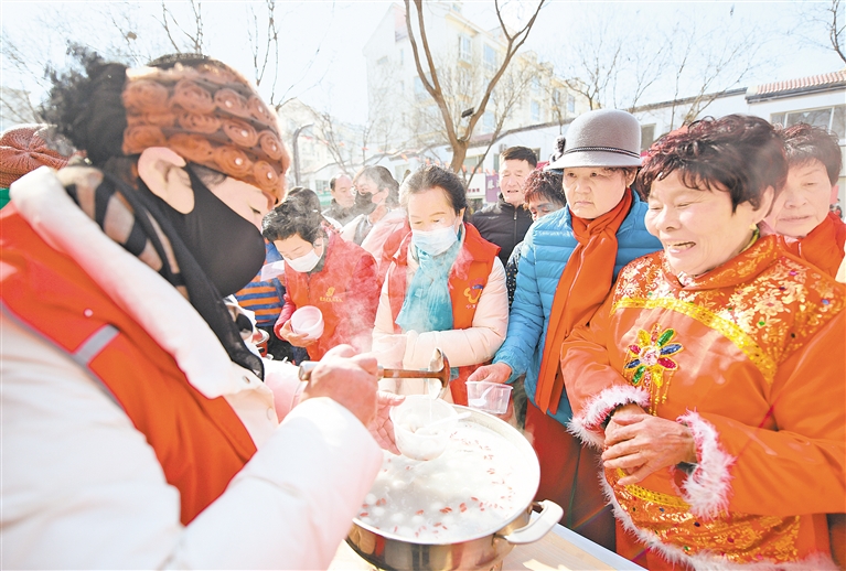 2月12日,银川市兴庆区新华街街道富华社区居民品汤圆。 宁夏日报报业集团全媒体记者 高晓刚 摄