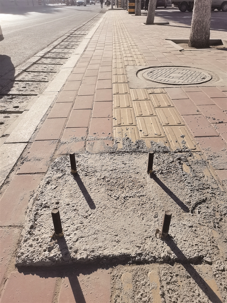 日前,在固原市原州区寨科乡东埫村附近的人行道上,一废弃的水泥基座剩下四根钢筋凸出地面五六厘米,而且有2根钢筋就竖立在盲道上,周围没有任何警示标志。村民呼吁有关部门及时平整、拆除这些隐患,即便不能及时拆除,可先采取一些安全防护措施。 (通讯员 周复生 摄)