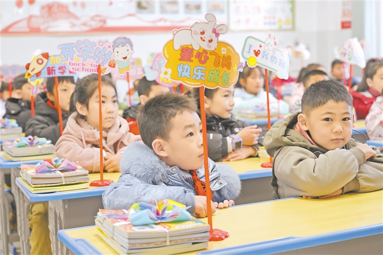 2月16日,银川市金凤区第十二小学学生上“开学第一课”。 本报记者 贺紫瑞 摄