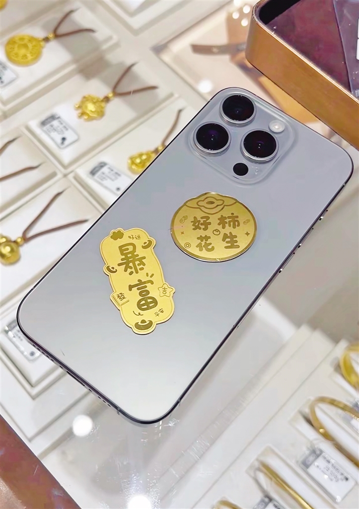 黄金手机贴悄然走红,成为不少年轻人的新宠。 本报记者 王婧雅 摄