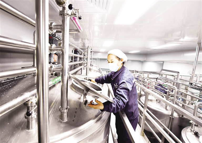 2月14日,优乳(宁夏)生物工程有限责任公司前处理车间操作工在检查物料。该公司是中国西部首个、亚洲单体规模最大的冻干牛初乳加工基地,建有牛初乳粉加工、脱脂奶预处理等多条生产线,冻干生产线面积500余平方米。牛初乳功能性乳制品深加工项目于去年11月投产,目前处于试生产阶段,日产500公斤牛初乳粉剂。 本报记者 王晓龙 白茹 摄