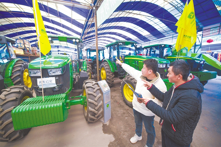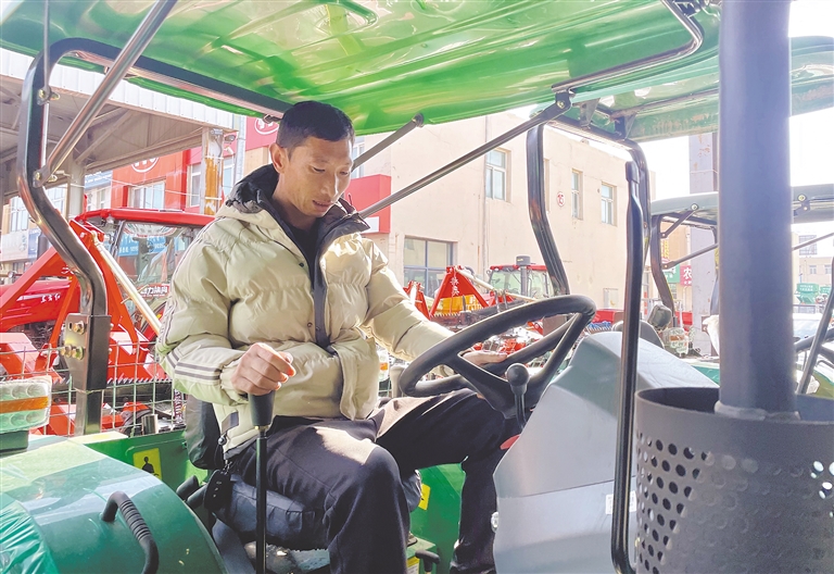 2月12,银川西北农资城,农户在选购农用拖拉机。 本报记者 马楠 王洋 摄