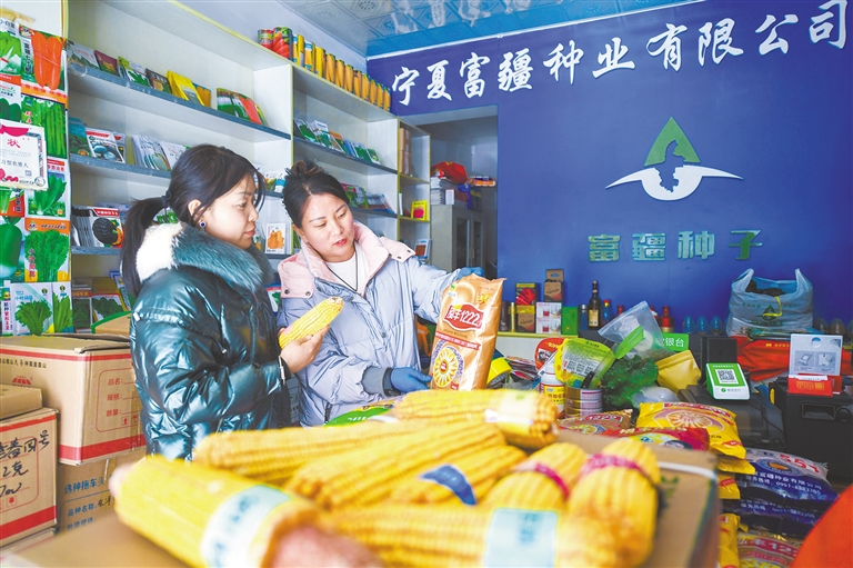 2月13日,在宁夏富疆种业有限公司专营店,销售人员向顾客介绍产品。 本报记者 马楠 王洋 摄