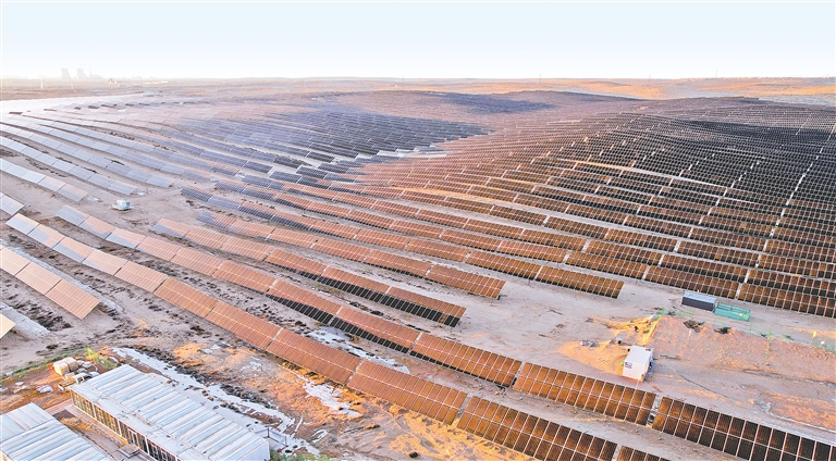2月14日,在国家能源集团宁夏电力有限公司国能晶体盐池20万千瓦复合光伏发电项目部,一块块光伏板纵横交错,汇聚成一片光伏的海洋。据悉,宁夏是首个国家新能源综合示范区,也是国家确定的“西电东送”战略最早送端之一。为了更好保障国家能源战略安全,在现有3条电力外送的通道基础上,谋划了第四、第五条电力外送新通道,其中第四条通道计划送电至上海等东部地区,第五条通道计划送电至粤港澳大湾区等南部地区。本报记者 王洋 贺紫瑞 摄