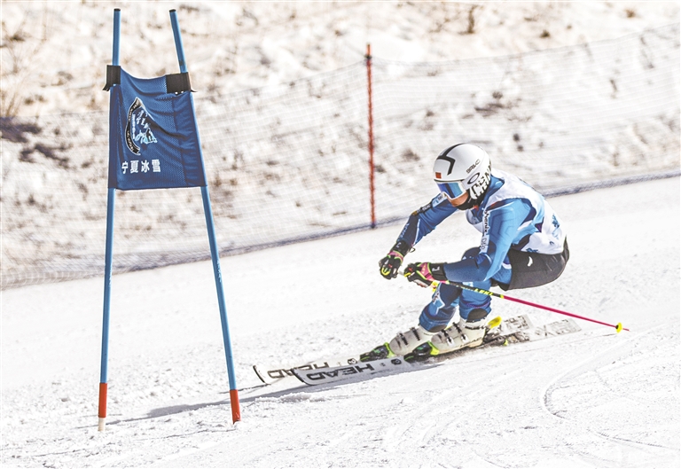 2月16日,选手在比赛中。当日,黄河流域九省区大众滑雪邀请赛在宁夏泾源雅豪滑雪场开赛。来自山西、甘肃、陕西、山东、青海等地的223名滑雪爱好者参赛,其中,宁夏选手113人。本次比赛由固原市政府主办,固原市教育体育局、泾源县、宁夏体育产业发展服务中心承办,旨在推动冰雪运动推广普及,激活冰雪经济活力。 宁夏日报报业集团全媒体记者 高晓刚 摄