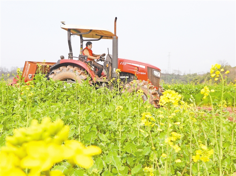2月18日,在四川省达州市高新区金垭镇龙坪村,农民驾驶农机翻耕土地。