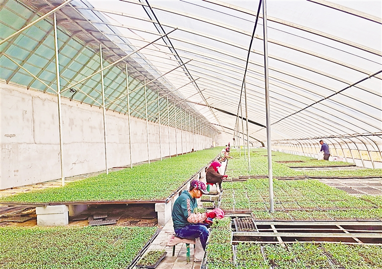 2月20日,吴忠市古城镇党家河湾村育苗大棚内,工人在分拣菜苗。 宁夏日报报业集团全媒体记者 杨玉瑛 见习记者 彭斌 摄
