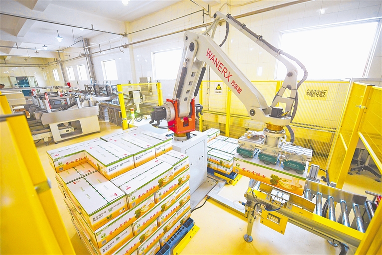 2月19日,宁夏塞北雪面粉有限公司生产车间,一箱箱挂面被机械臂整齐摆放在托盘上。目前,我区各类生产企业抢抓开年有利时机,开足马力忙生产、赶订单、拓市场,奋力冲刺首季开门红。