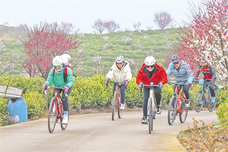 2月23日,骑行爱好者在安徽省芜湖市繁昌区孙村镇茶园骑行。早春时节,天气渐暖,人们在周末纷纷走出家门,拥抱自然,乐享春光。 均新华社发