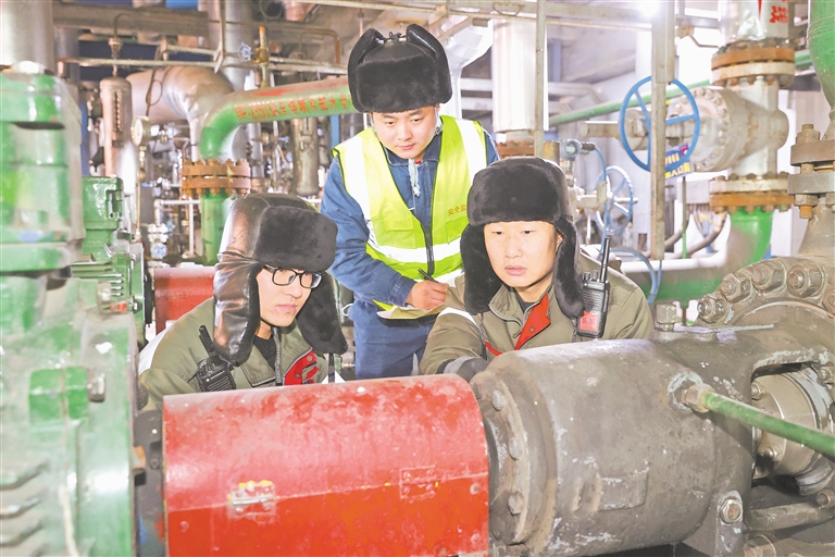 2月20日,一线操作人员在检查设备运行情况。为确保生产装置安全稳定清洁运行,国家能源集团宁夏煤业烯烃一分公司加强设备维护管理,做好管线巡检、隐患排查等工作,对大型机组、关键机泵的检查确认做到定人、定区、定责,对易发生冻情的设备加强动态管控。