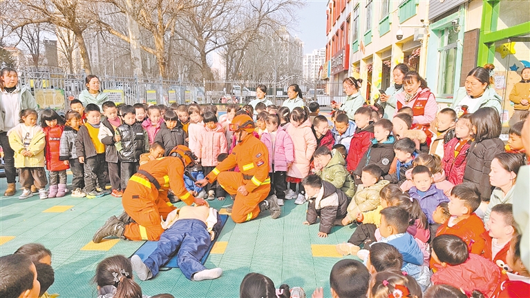 2月24日,为进一步做好校园消防宣传教育工作,增强学校师生消防安全意识和自救能力,国家消防救援局宁夏机动队伍在银川市兴庆区启明星幼儿园开展“开学第一课”活动。 本报记者 王婧雅 摄