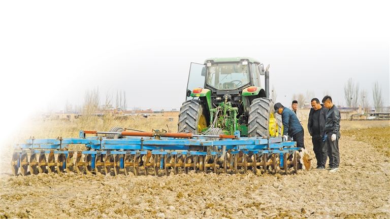宁夏万众农业机械化服务有限公司负责人王健带着记者走进农机库:4台装配深松铲的拖拉机锃亮如新,每台机械上都印有“国家补贴机具”字样。“这款配套齐全的进口拖拉机原价100多万元,国家补贴了15万元,还有农技专家上门调试。”王健轻抚播种机的精量排种器说,农业讲究精耕细作,智能化农机设备的应用恰恰符合了这一点,今年他们的农机全换上了“智能芯”,将更好地服务3.4万亩土地的耕种。