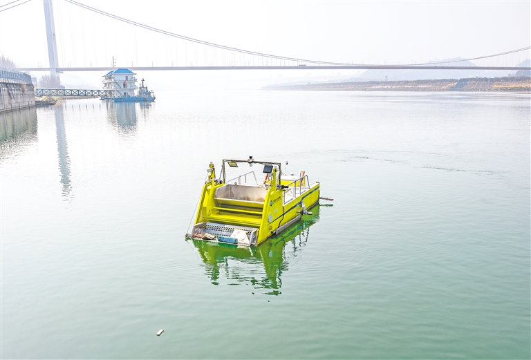 2月25日,智能清洁机器人在三峡大坝坝前水域收集水上漂浮物。近年来,三峡集团长江电力三峡电厂先后开发检测维护机器人、设备巡检机器人、水域作业机器人、智慧仓储机器人等多种类型的“机器人编队”,提升运维效率和安全水平,为大国重器安全运行保驾护航。新华社发