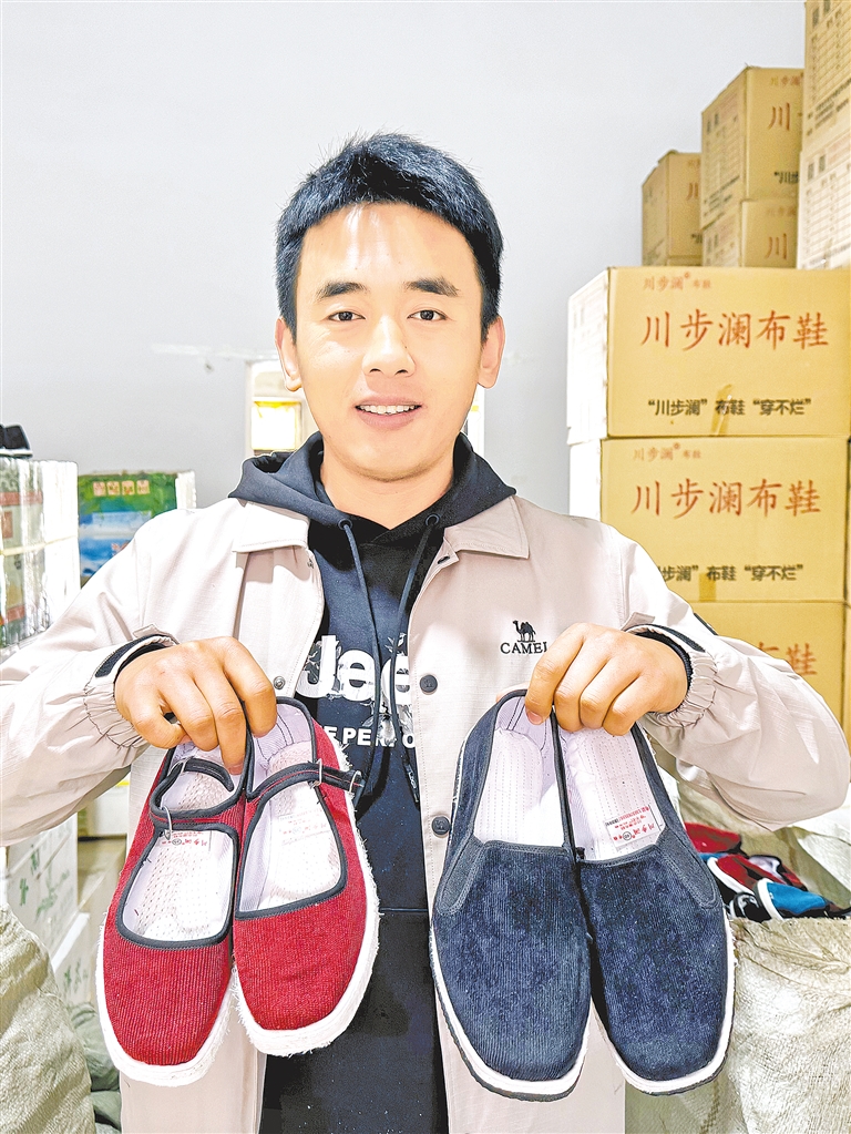 通过直播间的评论和客户的反馈,马武伟不仅展示了布鞋的制作工艺和独特魅力,还与顾客直接互动,了解他们的需求和建议,选择了更好的布料,进一步改进制作工艺。如今,“川步澜”布鞋的销售范围从最初的西北五省区,扩展到全国各地,一年卖出10万双布鞋,年收入达30万元。