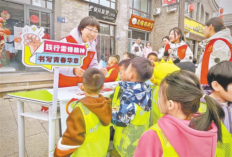 3月4日,志愿者宣讲雷锋精神。当日,盐池县组织志愿服务大集,汇聚老中青三代共70余名志愿者,用实际行动诠释“雷锋精神”,为居民送去便利和关怀。宁夏日报报业集团全媒体见习记者 贺静 摄
