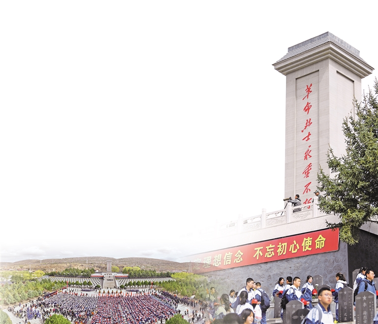 2024年4月3日,固原市第二中学、固原市弘文中学等学校师生及自治区思政课名师工作室成员、固原市机关事业单位干部职工共2000余人,在任山河烈士陵园开展祭扫活动。 (资料图片)