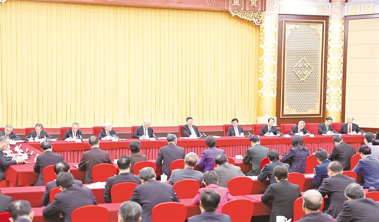 中共中央政治局常委、全国政协主席王沪宁,中共中央政治局常委、中央办公厅主任蔡奇参加看望和讨论。