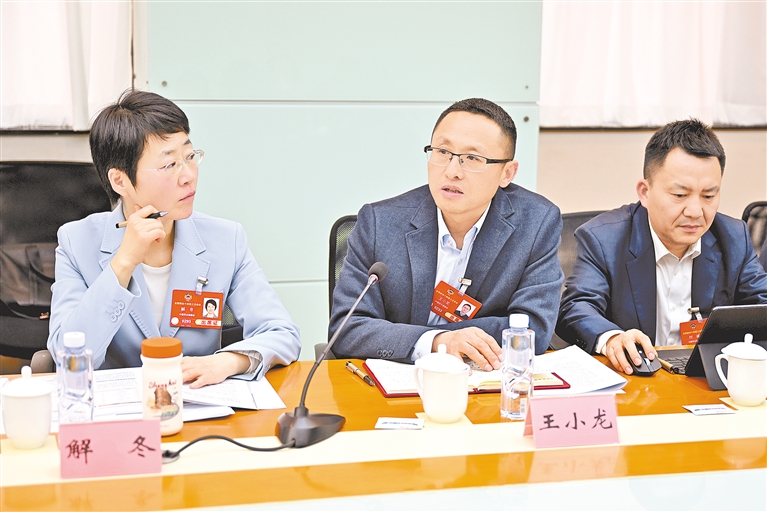 3月7日,住宁全国政协委员王小龙(中)在界别小组讨论中发言。 本报记者 王鼎 摄