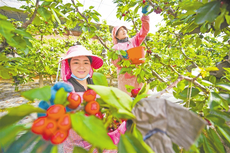 3月12日清晨,贺兰县习岗镇新平村峻松樱桃采摘园内果香四溢,樱桃成串缀满枝头。目前,贺兰县以新平村、雄英村、隆源村等为示范基地,累计发展设施樱桃近400亩,建成种植大棚222栋,年产量超5万斤,成为带动乡村产业升级的新引擎。