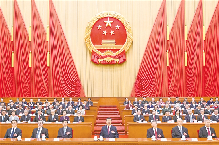 习近平、李强、王沪宁、蔡奇、丁薛祥、李希、韩正和大会主席团成员在主席台就座。