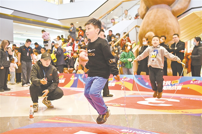 3月15日,2025年全民跳绳挑战赛(银川站)在银川建发现代城举行,共有来自全区的240余名青少年运动员报名参赛。此次比赛将举办地点选择在大型商场,旨在开展竞技体育的同时,让大众更多关注青少年体育运动,普及跳绳运动。 宁夏日报报业集团全媒体记者 王刚 李宏亮 高晓刚 摄