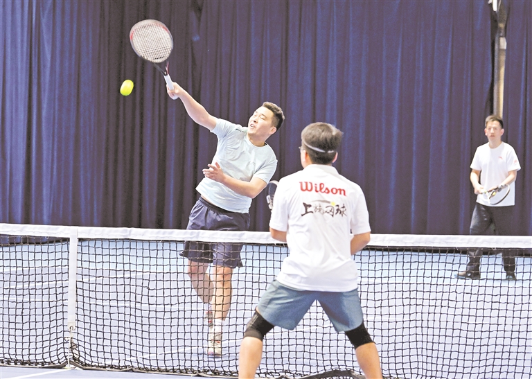 3月15日,网球爱好者在赛场上激烈比拼,尽享比赛乐趣。当天,2025年宁夏业余网球俱乐部联赛首站比赛在宁夏亲水体育中心网球馆举行,吸引120余人参加。 本报记者 左鸣远 摄