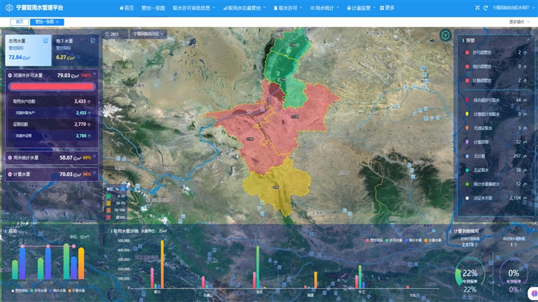 宁夏取用水平台动态监测全区水资源取用状态,是从严从细管好水的“千里眼”。 (图片由自治区水利厅提供)