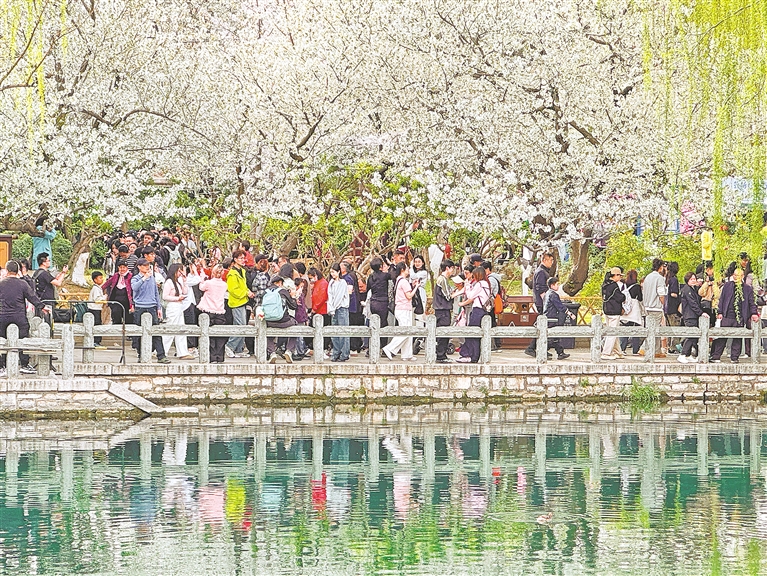 3月23日,游人在山东省济南市五龙潭公园踏青赏花。春分过后,各地春意融融。人们纷纷来到户外踏青赏花,乐享春光。 新华社发