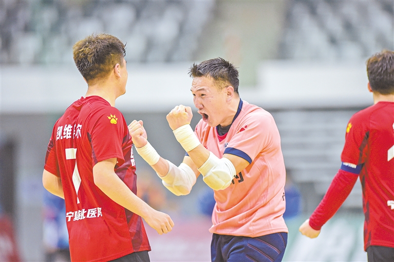 3月26日,宁夏平罗恒利队球员庆祝进球。当日,“凤凰三立”杯2025全国五人制足球锦标赛决赛在广东肇庆新区体育中心体育馆打响,宁夏平罗恒利队以2比1战胜浙江杭州临平吴越钱唐队,夺得冠军。