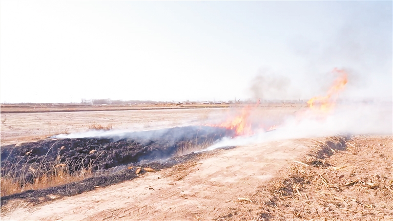 3月22日,平罗县一处农田里,农户将芦苇聚集起来焚烧,火苗和烟气很快蔓延,幸而被消防救援人员及时发现并劝阻。正值春耕时节,在田间点燃麦草或芦苇等易燃物,很容易借风势引发火灾,造成消防隐患。耕种虽忙,安全意识不可忘,如需进行烧荒等用火作业,务必提前向相关部门报备,远离房屋、草垛等,并做好防火隔离措施。 (本报记者 王雨婷 摄)