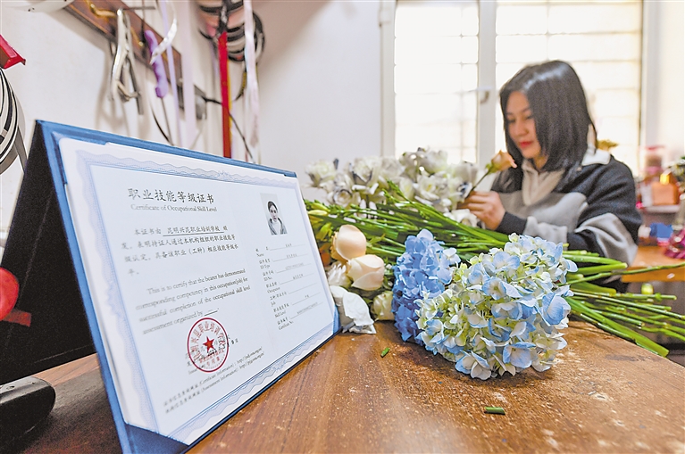 自打决心入花行,宋丽萍便在内心暗暗起誓:必在“花街”谋得一席之地。她南下昆明从零学起,钻研插花艺术,赴各地打比赛、看展会,取得了高级花艺师证书。