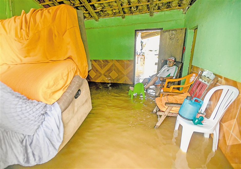 3月26日,在玻利维亚派拉斯港,当地居民坐在被洪水浸泡的家中。玻利维亚总统阿尔塞26日宣布,因遭遇持续降雨引发洪水和山体滑坡等严重自然灾害,玻利维亚即日起进入全国紧急状态。官方数据显示,截至目前,由于强降雨、洪水和山体滑坡,玻利维亚全国已有51人死亡,818所房屋被完全摧毁,近37.8万个家庭受灾。玻政府已紧急向灾区运送234吨人道主义救援物资。 新华社/法新