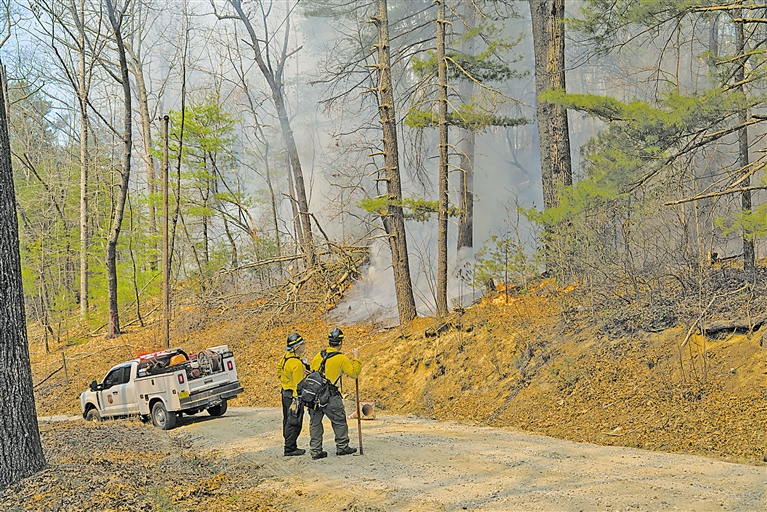 3月26日,在美国北卡罗来纳州萨卢达,消防员进行灭火作业。美国东部北卡罗来纳州多地近日山火肆虐,大批居民接到疏散令。天气预报显示,干燥多风天气将持续。 新华社/美联
